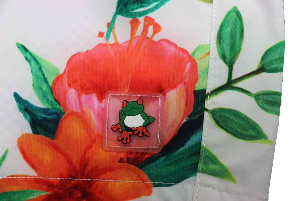 - Featured signature tropical print: Hummingbird- (pink/orange flowers)