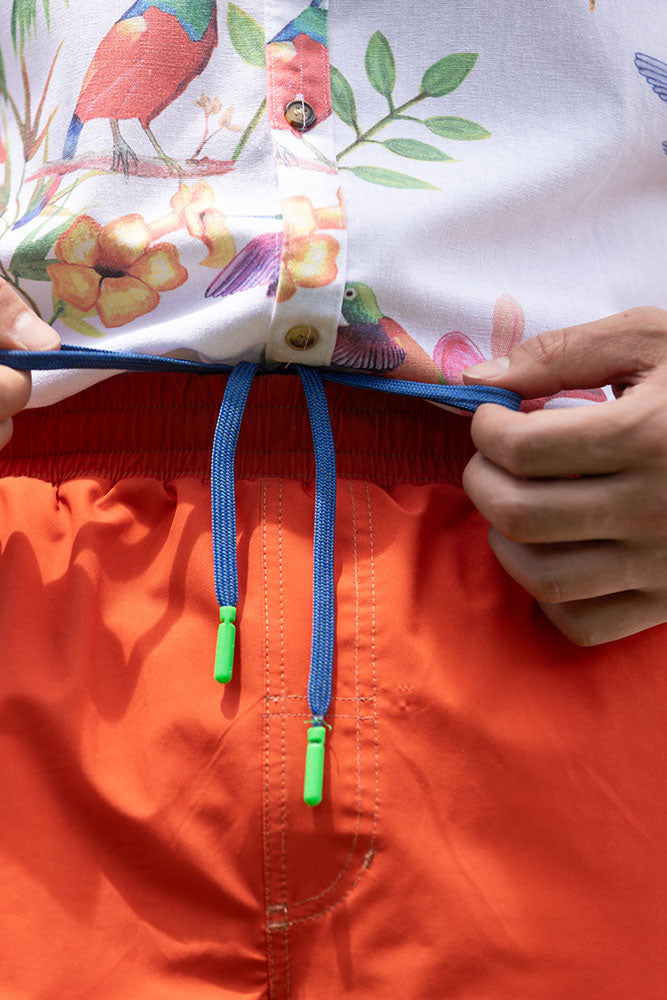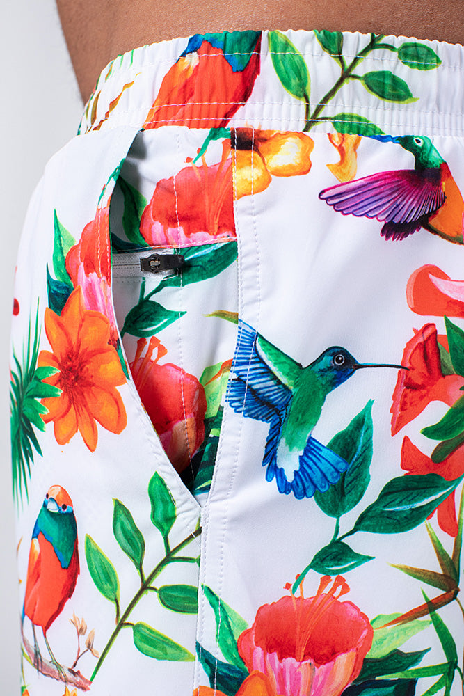- Featured in signature tropical print: Hummingbird (Orange and Pink Flowers)