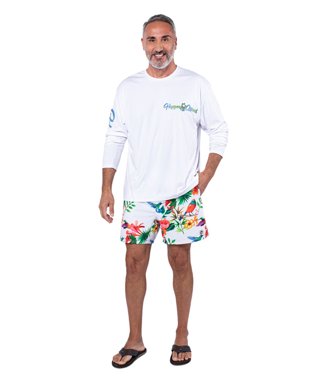 These swim trunks effortlessly blend style, comfort, and functionality, making them ideal for both beach and pool days. Crafted from high-quality, quick-drying, and breathable fabric, they ensure you stay cool and dry all day long. Featuring a mid-thigh inseam and subtle side slits, these trunks flatter every body type. Available in a variety of fun colors and patterns, they add a splash of personality to your summer wardrobe. Designed for your convenience, they include two front pockets and two zippered pockets for secure storage. Inside, a boxer brief liner and an internal drawstring offer a customized fit and all-day support, allowing you to move with ease and confidence in or out of the water. Make a statement on your own or coordinate effortlessly with the family.